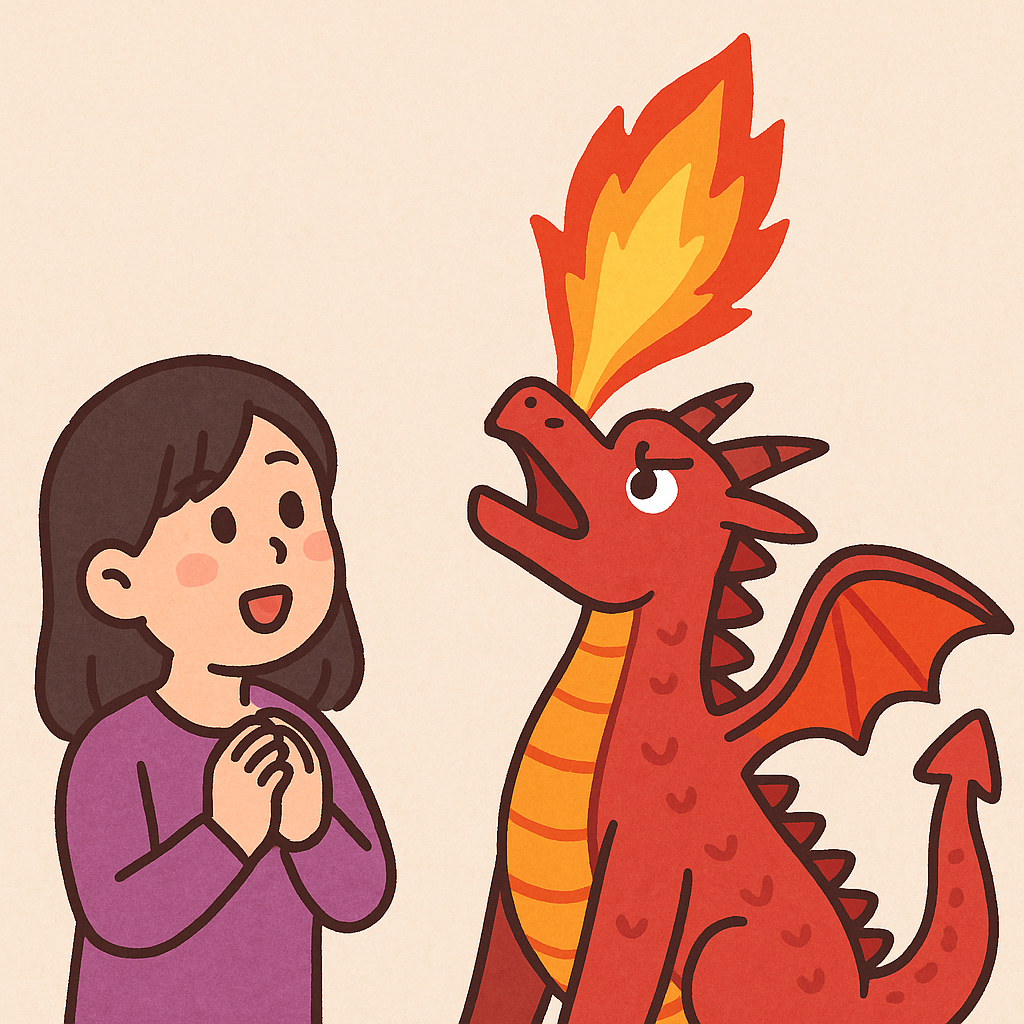 예: “용이 갑자기 나타나 내 앞을 가로막고 불을 질렀어요… 식은땀이 났어요”