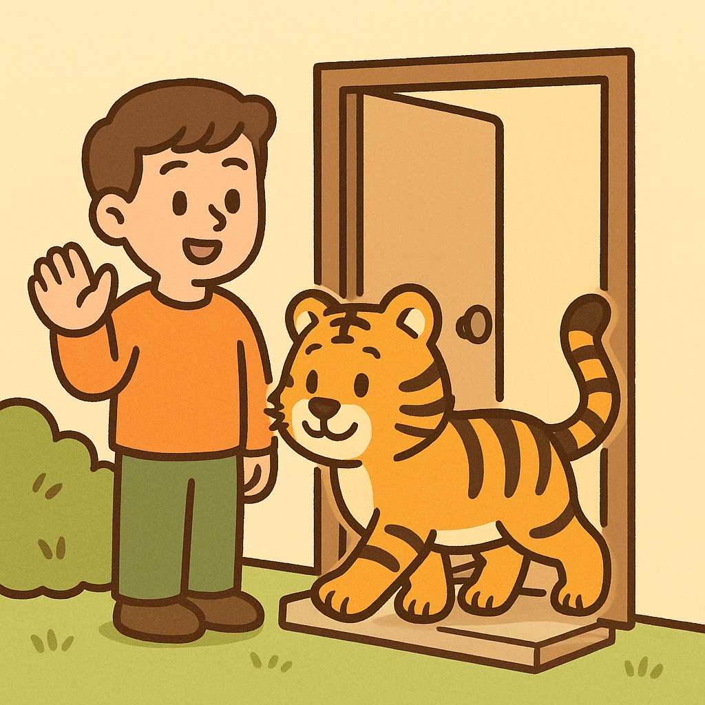 Q1. “문을 열자 호랑이가 조용히 들어와 소파에 앉았어요”